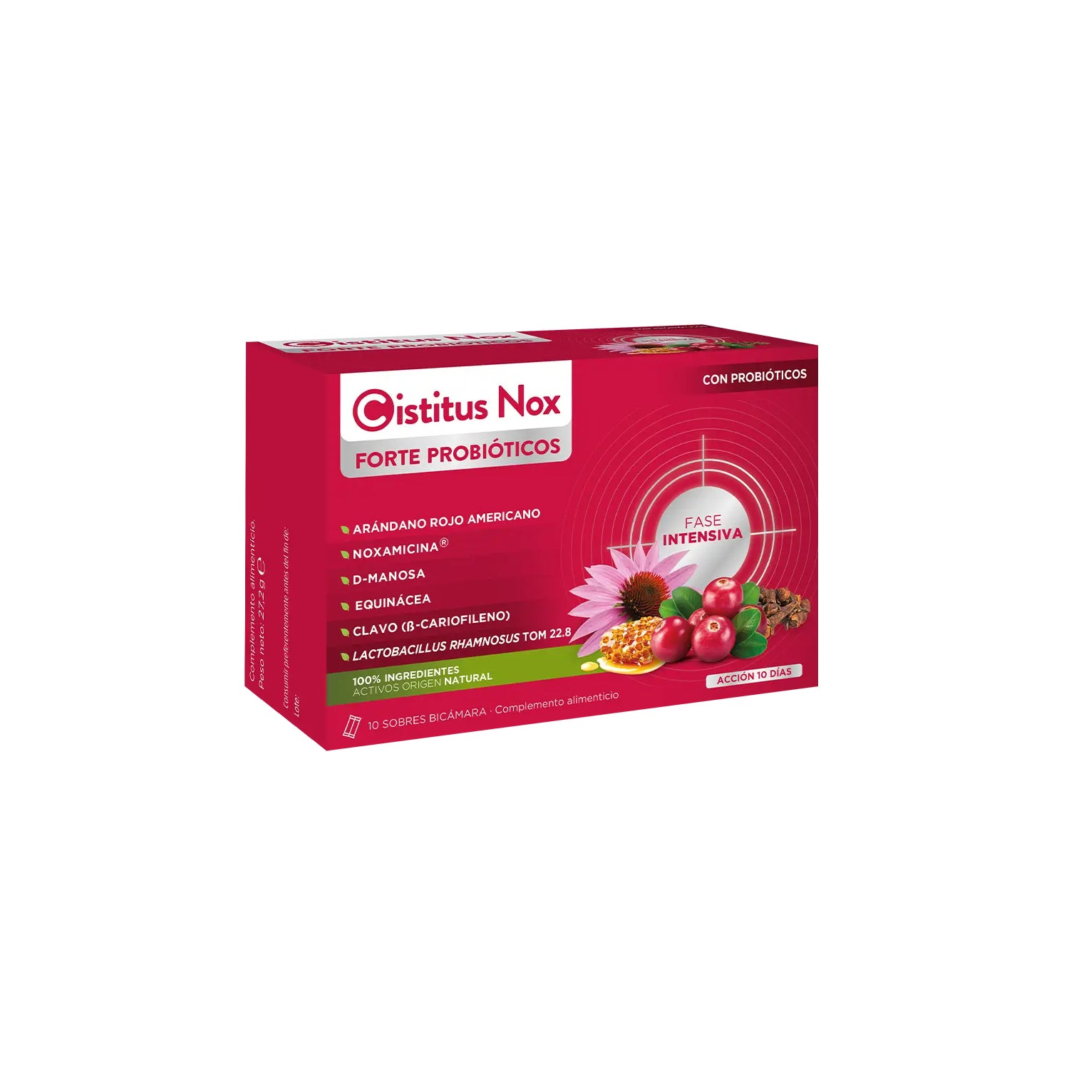 Cistitus Nox Forte 10fresh est un complément alimentaire qui aide à soulager les gênes urinaires courantes. Il est également enrichi en principes actifs naturels tels que le clou de girofle, l'échinacée, la noxamycine, le D-mannose et la canneberge ; des éléments qui favorisent le bien-être des voies urinaires. Contient 10 sachets.