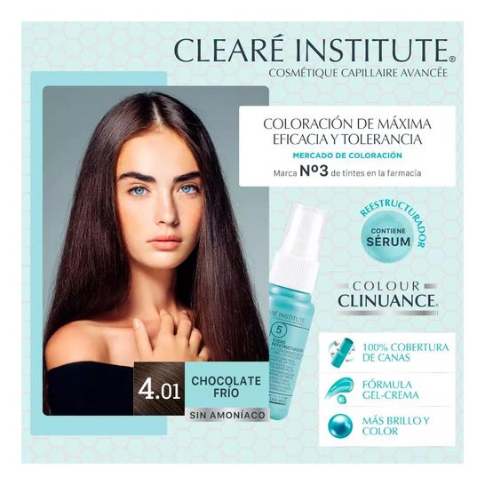 Clearé Institute Colour Clinuance 4.01 Cold Chocolate 170ml est un gel-crème à base de provitamines de coton qui non seulement minimise les dommages, mais traite et renforce également les cheveux et le cuir chevelu. Le traitement respecte à 100% le film hydrolipidique de la peau.
