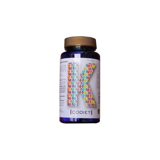 Complément alimentaire sous forme de capsules végétales, élaboré à base de vitamine K2-7 ou ménaquinone, qui est la forme de vitamine K la plus active et qui reste plus longtemps dans l'organisme.