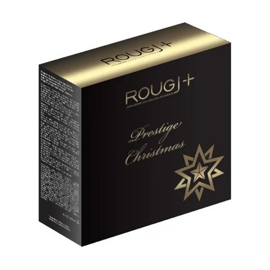 Rougj Prestige Christmas Chest est un ensemble de produits de maquillage composé d'une palette de 4 ombres à paupières douces et crémeuses, d'un pinceau pour estomper les ombres à paupières, d'un mascara volumateur, d'une poudre translucide pour éviter la brillance et donner un aspect velouté au visage, d'un crayon à lèvres Red Passion et d'un rouge à lèvres Hydra-Shine strawberry aux sphères d'acide hyaluronique. Le tout est présenté dans un sac à bandoulière et un portefeuille "Campo Marzio", adaptés à tous les types de peau.