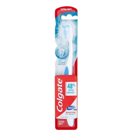 Colgate 360º Sensitive Pro Relief Brosse à Dents Extra Douce est une brosse à dents spécialement conçue pour les personnes ayant des dents sensibles. Cette brosse présente des brins qui sont 48 % plus doux par rapport à d'autres brosses, offrant une expérience de brossage plus délicate.