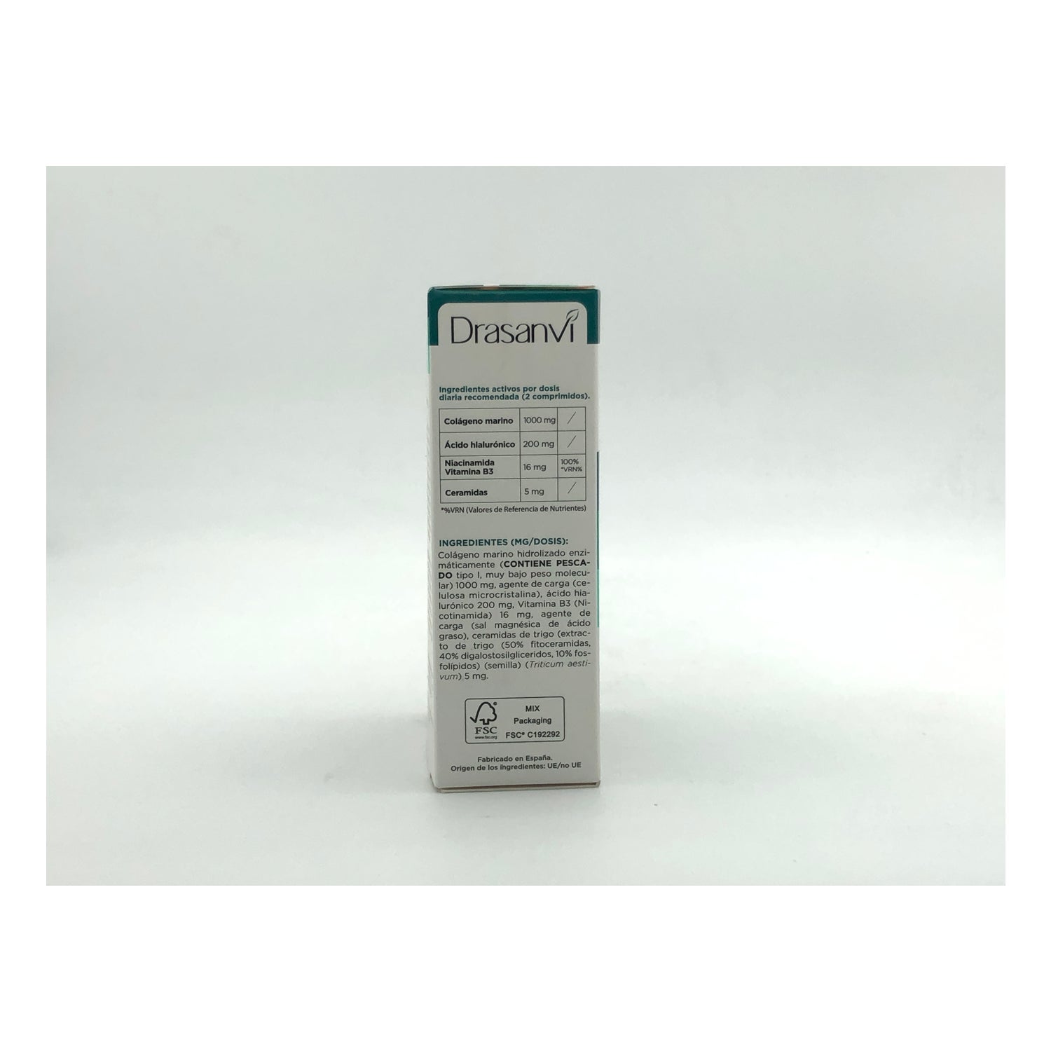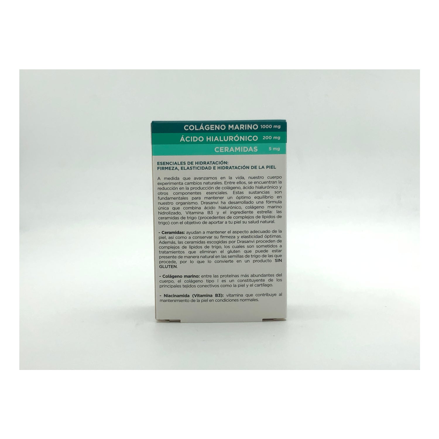 Collmar Hydrated Skin combine le collagène marin hydrolysé par voie enzymatique, l'acide hyaluronique, la vitamine B3 et les céramides de blé pour le soin de la peau. Le collagène de faible poids moléculaire est extrait de sources halieutiques et améliore l'absorption. L'acide hyaluronique assure l'hydratation, tandis que la vitamine B3 favorise l'uniformité du teint. Les céramides de blé renforcent la barrière cutanée. Ce produit est conçu pour favoriser la santé et l'apparence de la peau d'un point de vue nutritionnel.