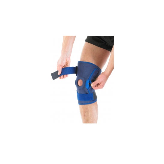 Attelle de genou indiquée pour les petits traumatismes, les douleurs rhumatismales ou articulaires du genou, l'arthrose ou l'arthrite, la rééducation des blessures ou la prévention des blessures lors d'exercices physiques avec risque de luxation ou d'entorse.