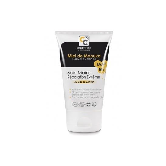 Comptoirs et Compagnies Crème Réparatrice Mains IAA15+ 50ml est l'option parfaite pour la réparation intensive et la protection quotidienne de la peau des mains. Cette crème est formulée pour le soin des mains sèches, abîmées ou gercées, utilisant miel de Manuka IAA15+ pour restaurer, hydrater et apaiser la peau dès la première application.