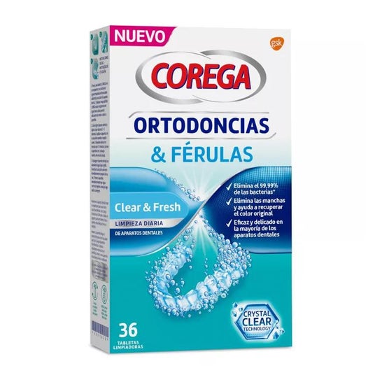 Corega Orthodontics & Splints Clear & Fresh 36 pcs sont des pastilles de nettoyage pour les appareils dentaires, qui aident à maintenir facilement leur utilité et leur apparence.
