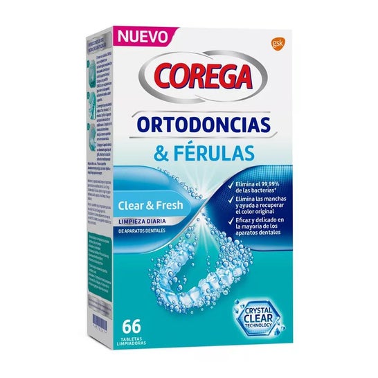 Des comprimés nettoyants antibactériens quotidiens développés avec la technologie Crystal Clear pour vous aider à garder vos appareils dentaires au mieux de leur forme. La formulation du nettoyant pour orthodontie et attelles COREGA est conçue pour éliminer les taches, aider à restaurer la couleur d'origine et éliminer les bactéries responsables des odeurs. Convient pour le nettoyage quotidien des prothèses et des attelles.