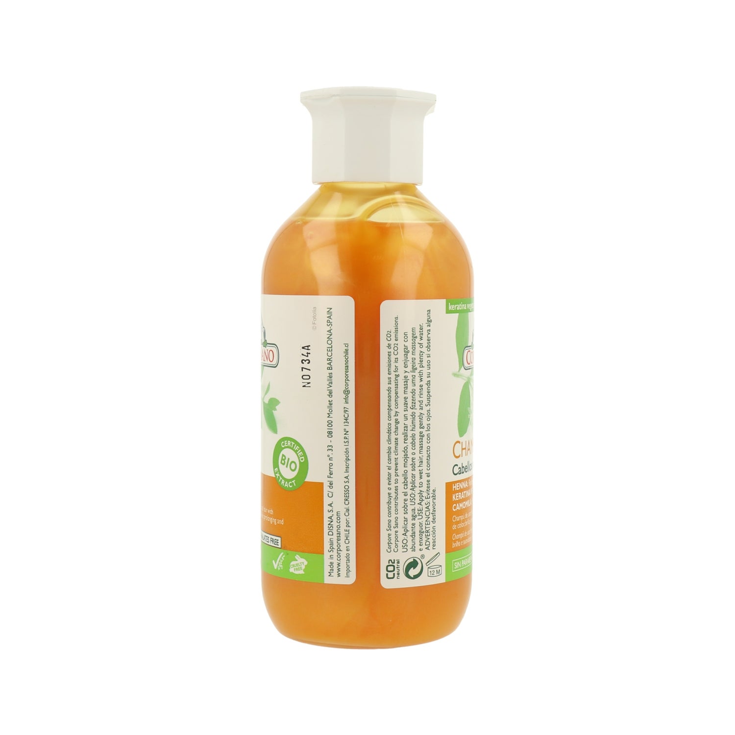La camomille contient des mucilages, fibres qui absorbent l’eau et fonctionnent comme des réserves d’énergie pour la plante. Cette capacité d’absorption est utilisée pour former des solutions visqueuses et des gels, c'est pourquoi l’on rencontre de nombreux shampooings, gels de bain ou lotions à base de camomille. Les produits capillaires qui incluent la camomille dans leur formulation tirent parti de l’effet de trois flavonoïdes (apigénine, quercétine et azulène) pour éclaircir progressivement la teinte des cheveux. L’effet est naturel, car il ne s’agit pas d’une substance décolorante agressive, et confère des nuances dorées. Contrairement à certaines teintures, elle respecte l’intégrité de la fibre capillaire, ne pénétrant pas dans la cuticule.