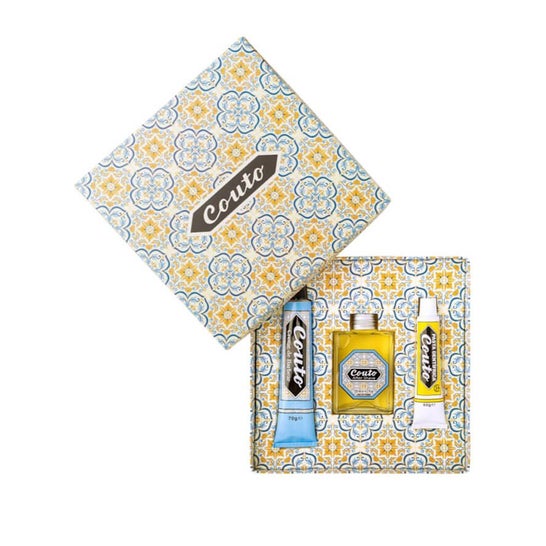 Pack de produits cosmétiques pour le soin et l'hygiène de tous les types de peau. Contient une crème à raser de 70g, formulée avec du panthénol, de la glycérine et de la vitamine E, qui aide à adoucir la barbe et facilite un bon rasage. Avec un gel après-rasage de 125ml à base d'une combinaison de 6 extraits de plantes et de vitamines pour aider à apaiser la peau et prévenir les irritations. Comprend un dentifrice de 60 ml, adapté à un usage quotidien. Aide à garder la bouche propre et à protéger le vernis des dents et les gencives. Produits testés dermatologiquement avec des ingrédients biologiques. Présenté dans une boîte en carton recyclable décorée.