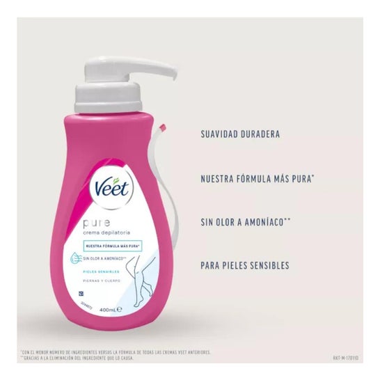 La crème Veet laisse la peau douce et délicieusement parfumée. Elle ne provoque aucune irritation. Disponible en présentation de 400 ml. Distributeur inclus. A conserver dans un endroit frais et sec. Produit réservé aux femmes. Tenir hors de portée des enfants. Ne pas dépasser le temps d'application total. Idéal pour une utilisation à domicile. Ne pas utiliser au quotidien.