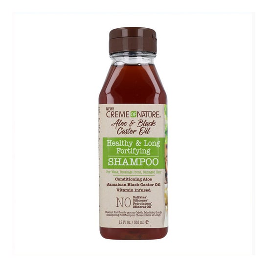 Crème Of Nature Aloe Ricin Noir Shampoo Fortifiant 355ml est idéal pour renforcer et revitaliser les cheveux abîmés, faibles ou traités. Ce shampooing combine les propriétés de l'aloe vera et de l'huile de ricin noir, offrant un nettoyage doux qui renforce la fibre capillaire de la racine aux pointes.