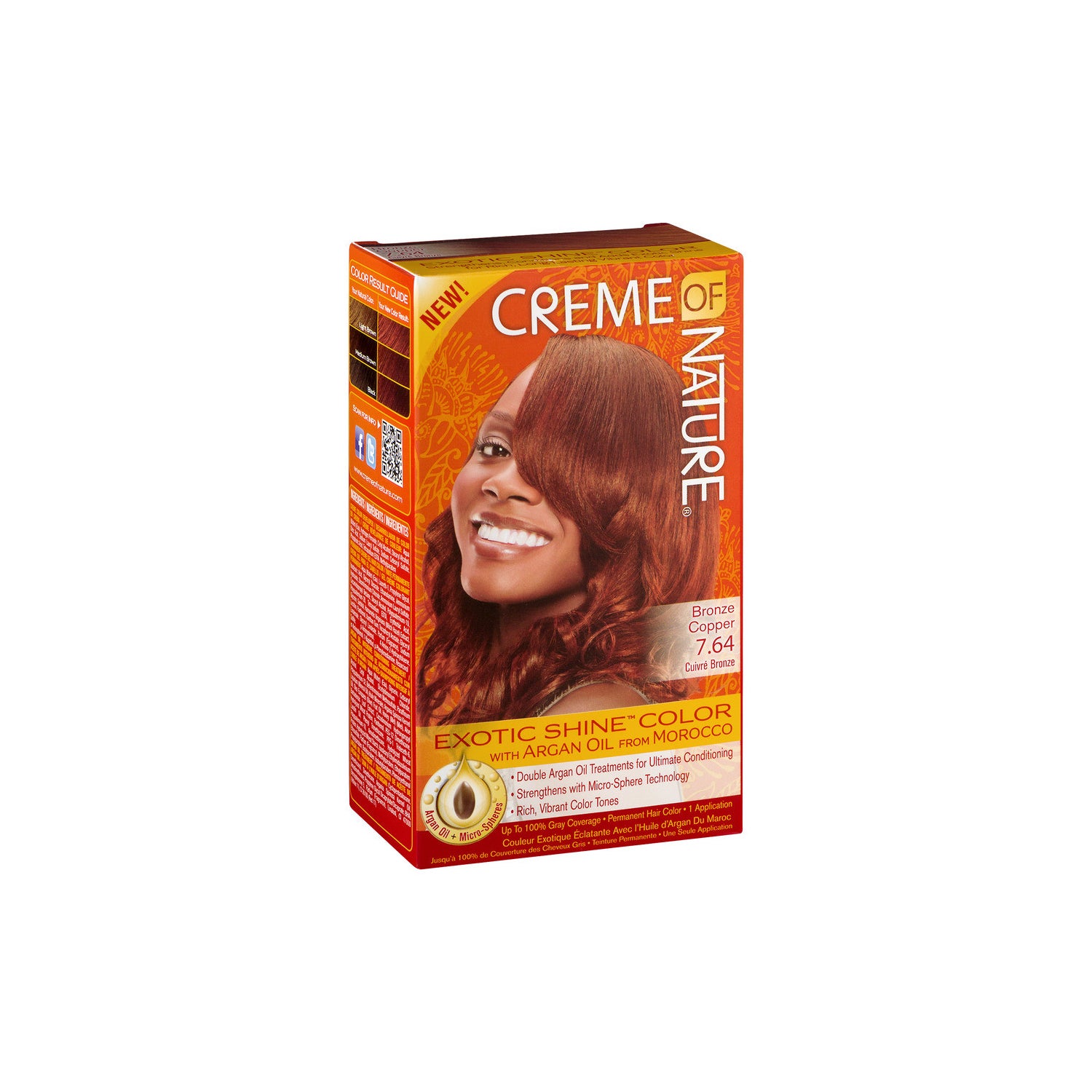 Kit de coloration permanente des cheveux en rouge bronze. Formulé avec la technologie des microsphères et l'huile d'argan du Maroc. Aide à couvrir les cheveux gris et à revitaliser les cheveux de façon durable. Apporte une couleur intense et saine à la mèche de cheveux, tandis que ses ingrédients actifs revitalisants adoucissent les cheveux.