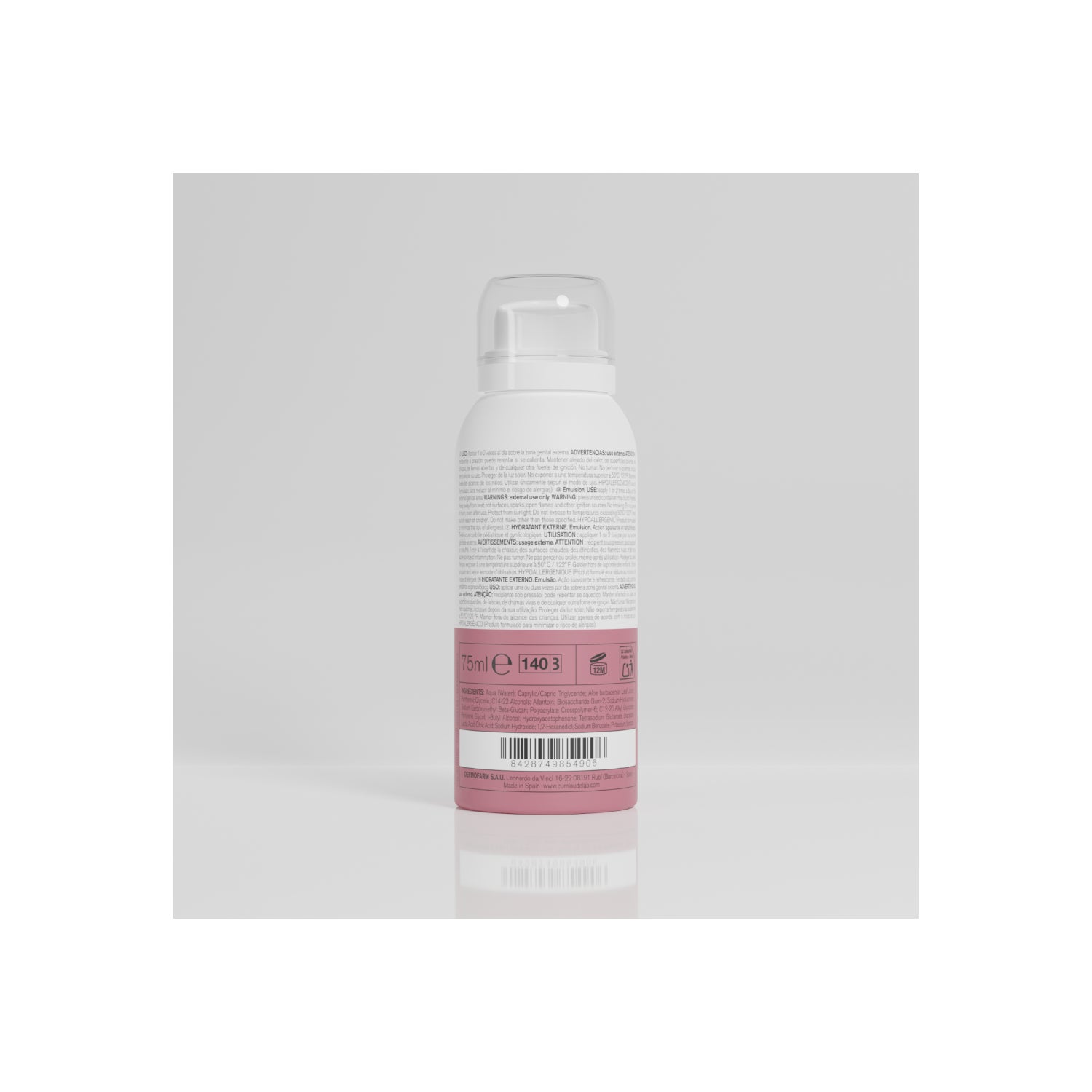 Émulsion hydratante en format spray, indiquée pour hydrater la zone vulvaire de manière pratique et confortable, en soulageant la sécheresse et en apaisant les démangeaisons et les inflammations.
