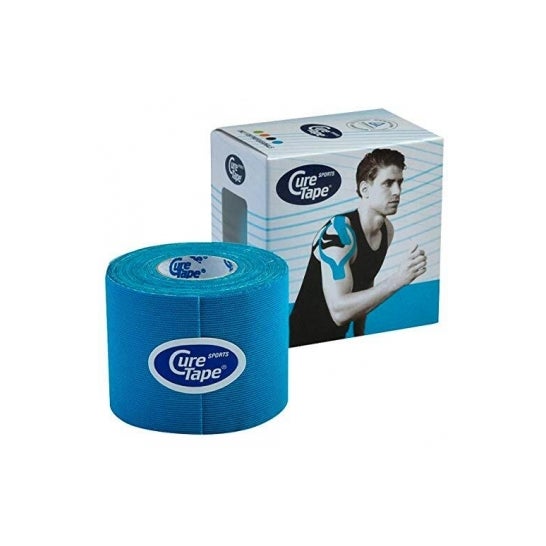 Cure Tape Sports Bandage Bleu Neuromusculaire 5cmX5m 1ud est un bandage de kinésithérapie qui aide à promouvoir la circulation sanguine et facilite l'oxygénation musculaire.
