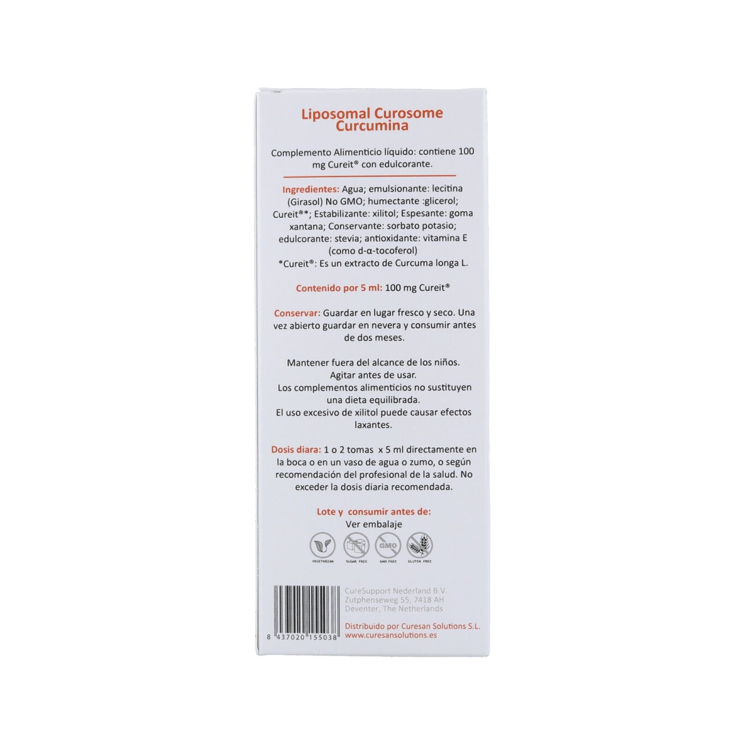 Complément alimentaire liquide formulé avec de la curcumine. Contient des curcuminoïdes, des protéines et des fibres. Favorise une activité digestive normale. Ses ingrédients ont des propriétés antioxydantes et anti-inflammatoires. Convient aux adultes.