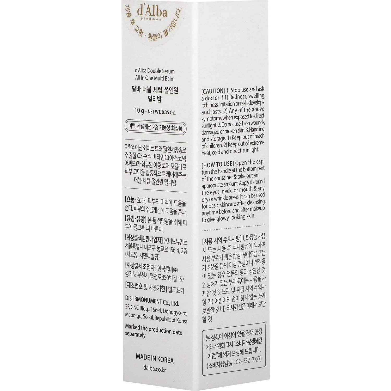 D'Alba Double Serum All In One Multi Balm 10 g est un baume multifonction conçu pour offrir de multiples bienfaits pour la peau. Sa formulation comprend des truffes blanches premium, soigneusement extraites du Piémont, en Italie, et est enrichie en tocophérol, connu sous le nom de vitamine E, qui contribue à sa haute teneur en antioxydants.