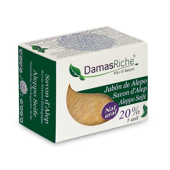 Le savon d'Alep est naturel et fabriqué à la main avec de l'huile d'olive et de l'huile de baies de laurier. Elle est traditionnellement utilisée par les personnes souffrant de problèmes de peau. L'huile de laurier a des propriétés nettoyantes, ce qui la rend idéale pour nettoyer les plaies. Il contribue à rendre la peau brillante et nourrie.
