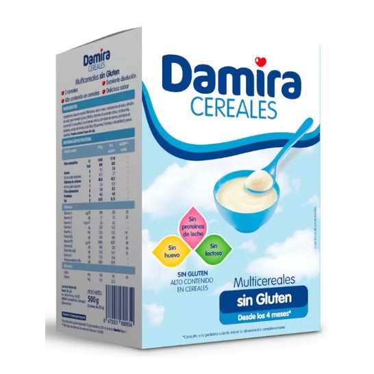 Damira Cereals gluten-free est une bouillie de céréales sans allergènes indiquée pour les bébés dans lesquels il est nécessaire d'éliminer du régime certains éléments qui peuvent provoquer des réactions indésirables en cas d'allergie tels que :