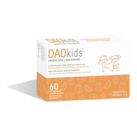 DAOkids 60comp est un aliment destiné à des fins médicales spéciales, spécifiquement pour la gestion diététique de la déficience en DAO (Diamine Oxidase), qui est nécessaire pour métaboliser l'histamine.