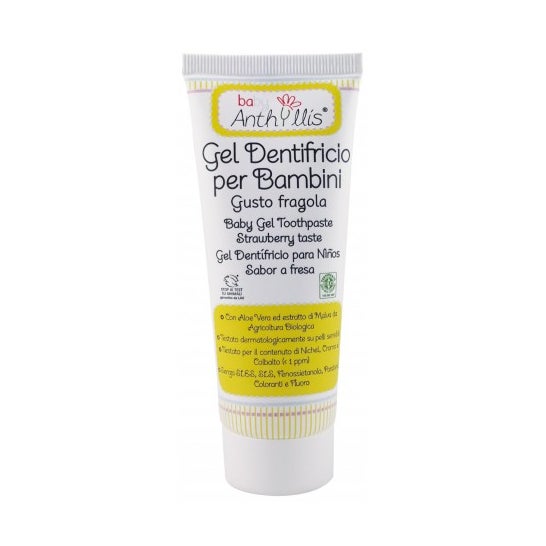 Dentifrice pour enfants d'Anthyllis, formulé à base d'Aloe vera et de mauve. Gel dentifrice pour enfants, adapté dès les premières dents, au goût de fraise. La composition peu abrasive assure un nettoyage sûr des dents de bébé. Aide à prévenir la formation de caries et assure l'hygiène de la cavité buccale. Les ingrédients sont d'origine biologique.