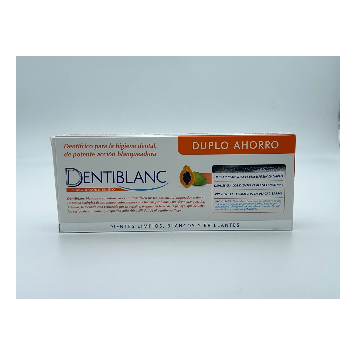 Blanchisseur dentaire intensif en format double avec 2 tubes de 100ml. Dentifrice formulé pour l'hygiène et le soin bucco-dentaire, d'une puissante action blanchissante.