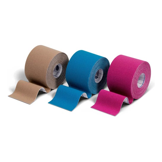 DermaPlast Active Bande Kinesiologique 5cmx5m Beige 1ud indiquée pour les bandages de maintien musculaire pendant les activités sportives et d'autres usages thérapeutiques.