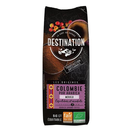 Café moulu de la variété Arabica 100%, provenant de l'agriculture biologique certifiée et du Commerce Équitable de producteurs du village d'Oibia, en Colombie. Il est idéal pour préparer une boisson de café douce, légèrement amère et très aromatique.