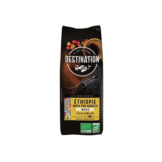 Café moulu éthiopien 100% biologique pour moka, avec une saveur torréfiée et intense. Contient du café pur Arabica cultivé dans la région de Djimmah et Limu sur les hauts plateaux africains. Fabriqué avec des ingrédients issus de l'agriculture biologique. Bonne source de magnésium, de fer et de vitamine PP. Il apporte des nutriments, des antioxydants, aide à protéger le cœur et le foie et stimule naturellement le métabolisme. Il s'agit d'un produit certifié biologique. Il est recommandé de le prendre seul.
