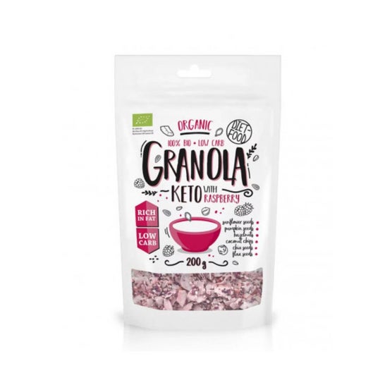 Diet Food Bio Keto Granola Framboise 200g est une granola biologique idéale pour ceux qui recherchent un petit-déjeuner ou une collation saine, faible en glucides et adaptée aux régimes cétogènes. Fabriquée avec des fruits secs, des graines et de la framboise lyophilisée, elle offre une option savoureuse et énergétique sans renoncer au contrôle des sucres.