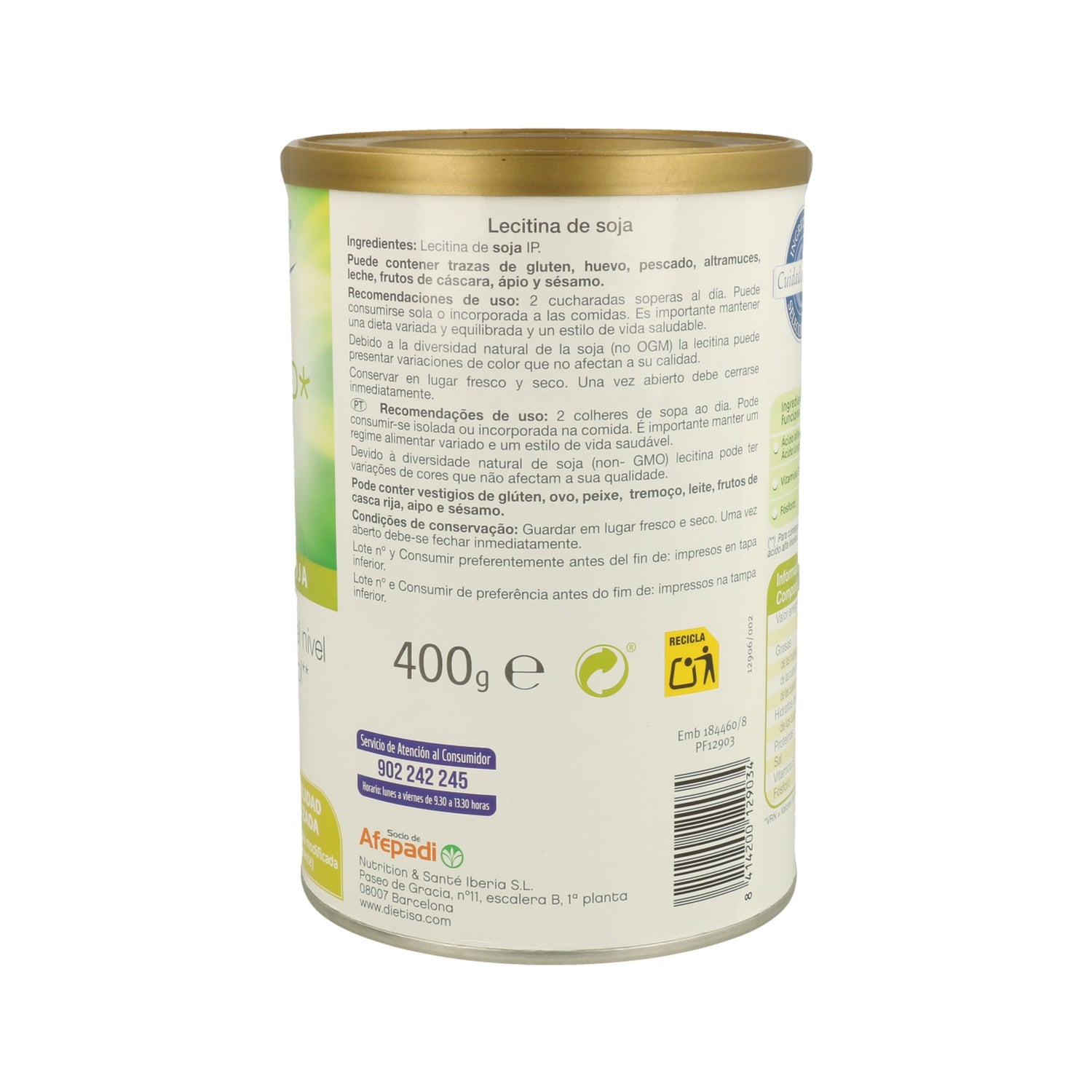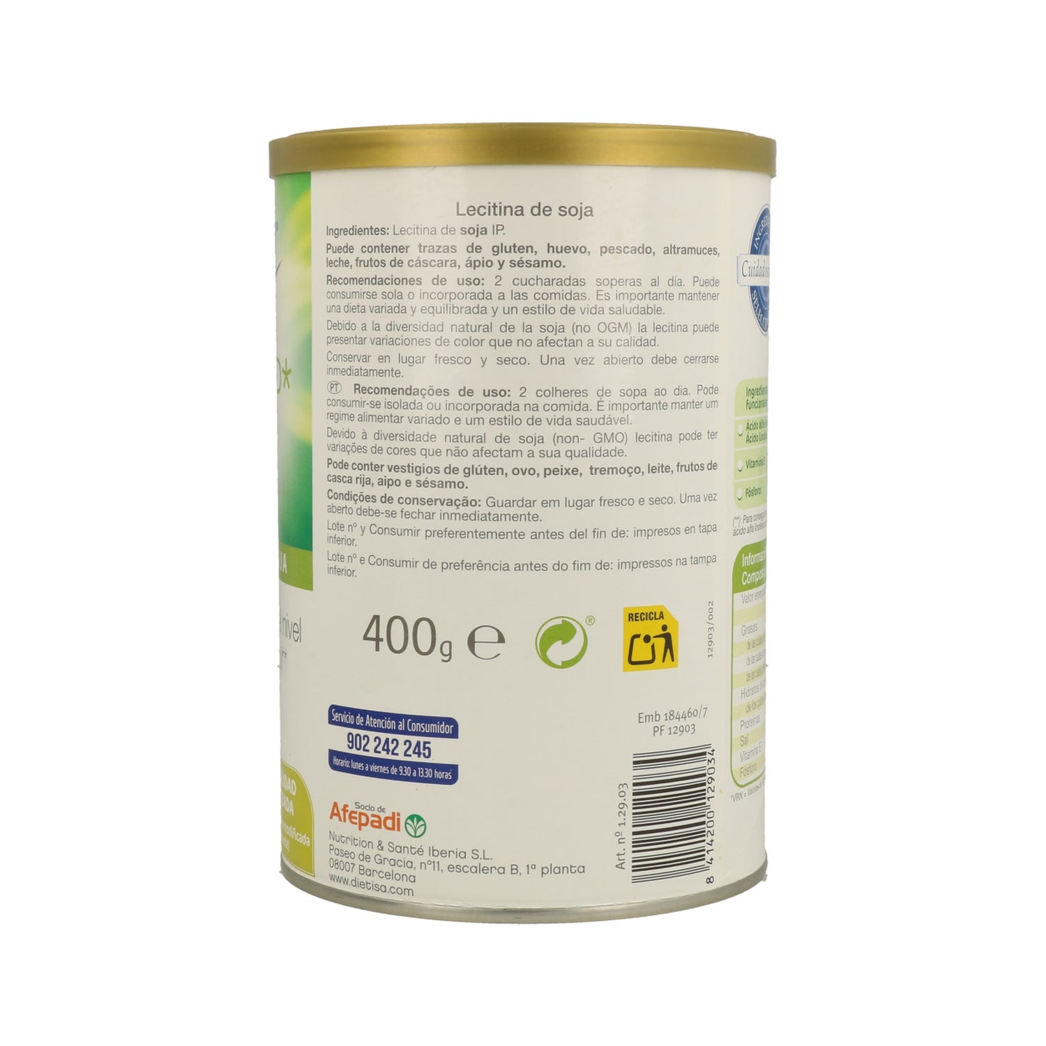 Dietess Savid Ip Soy Lecithin 400g est un complément alimentaire à base de lécithine de soja qui aide à maintenir un taux de cholestérol normal. Savid IP (Identity Preserved) est un mélange naturel de phospholipides qui offre la meilleure qualité et homogénéité, ainsi qu'une traçabilité garantie, car ce produit garantit qu'il ne contient pas d'organismes génétiquement modifiés (OGM/OGM) d'aucune sorte et dans tous les processus, de la culture et des semences au développement complet du produit.