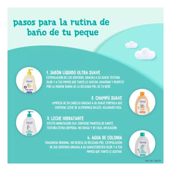 Savon liquide Nenuco testé sous contrôle dermatologique strict pour prendre soin de la peau délicate de bébé, même dès les premiers jours de vie. Convient aux bébés dès la naissance. Ce nettoyant protège et maintient l'hydratation de la peau délicate de bébé grâce à la douceur apportée par l'extrait d'aloe vera et la vitamine E. Sa mousse légère se rince facilement, tout en nettoyant correctement et en douceur, sans provoquer d'irritation, même sur les peaux très délicates. Il prévient le dessèchement et les irritations, nettoie et hydrate en douceur et n'irrite ni les yeux ni la peau. Il s'agit d'un savon testé dermatologiquement. Recommandé pour la toilette quotidienne des bébés. Tenir hors de portée des jeunes enfants. Ne pas en abuser. En cas d'allergie, consulter un spécialiste.