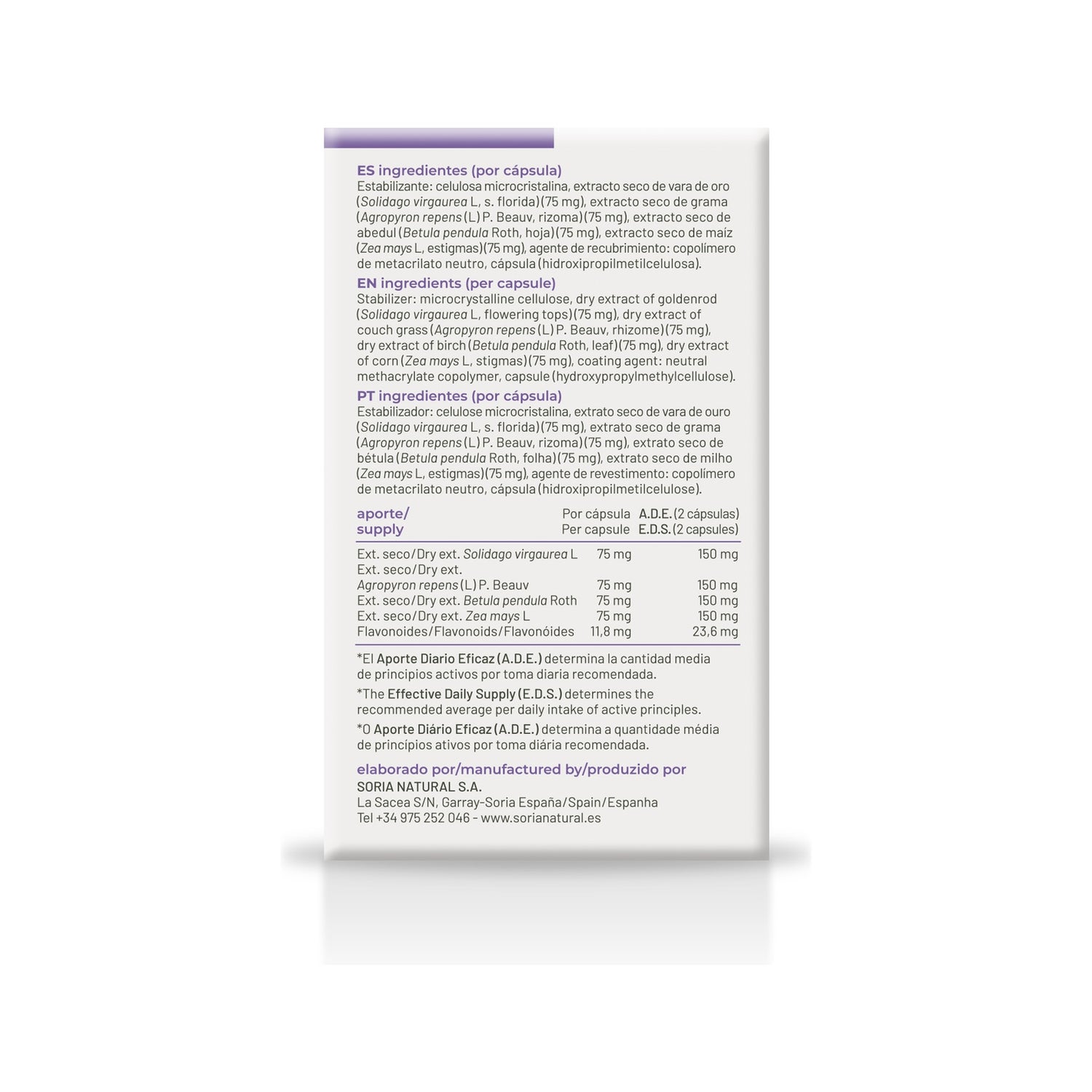 Chaque dose quotidienne du produit contient 22,44 mg de flavonoïdes provenant des différents extraits, tels que :