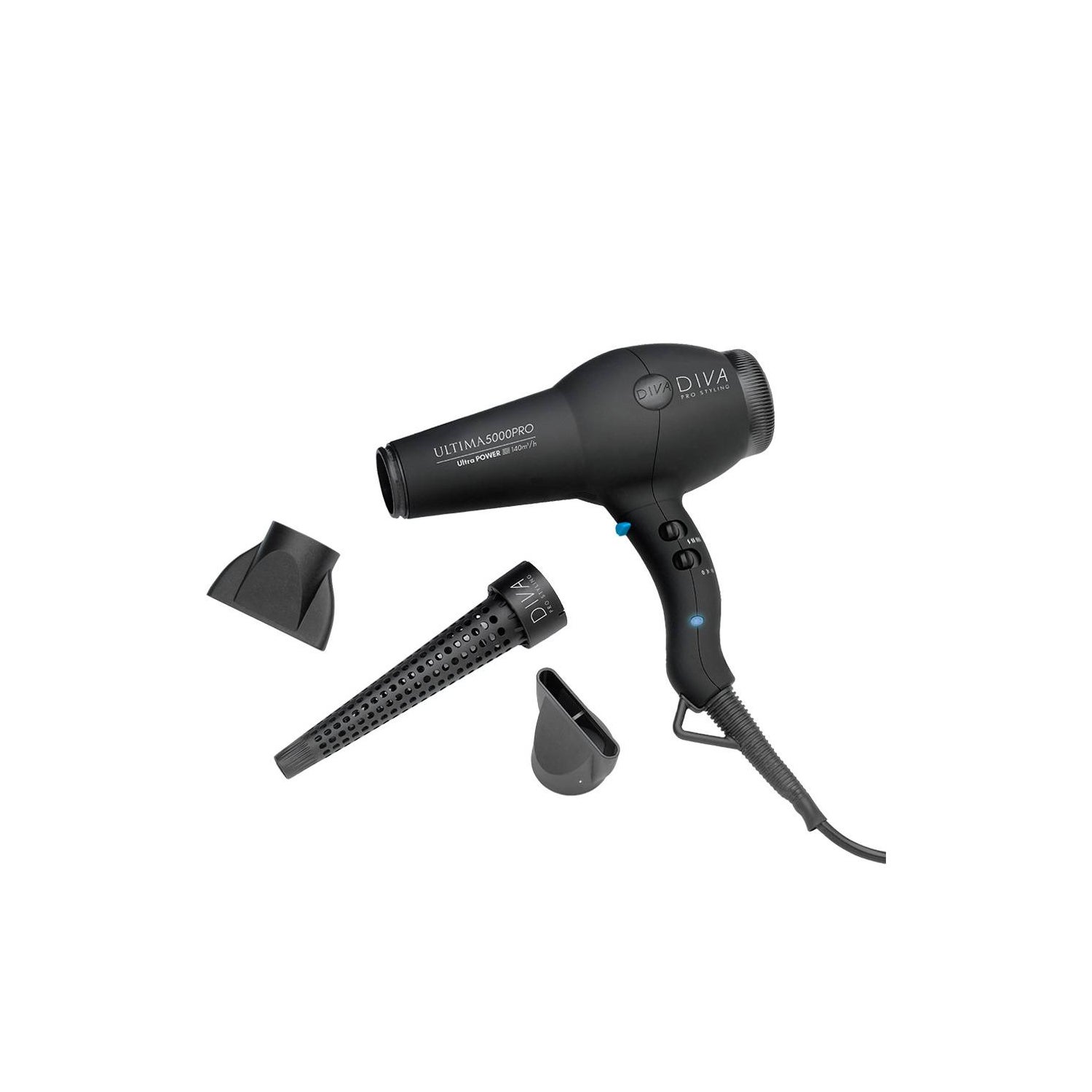 Diva Pro Styling Ultima 5000 Pro Sèche-cheveux Noir 2300W est un sèche-cheveux professionnel conçu pour offrir des résultats de haute qualité. Ce modèle dispose d'un puissant moteur haute pression de 2300W, garantissant un séchage efficace et rapide.