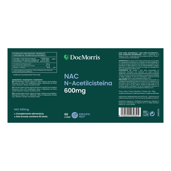 DocMorris NAC N-acétylcystéine 600mg 60comp est un complément alimentaire sous forme de comprimés qui incorpore N-acétylcystéine (NAC) comme ingrédient principal. Ce composant se distingue par ses propriétés antioxydantes dans l'organisme.