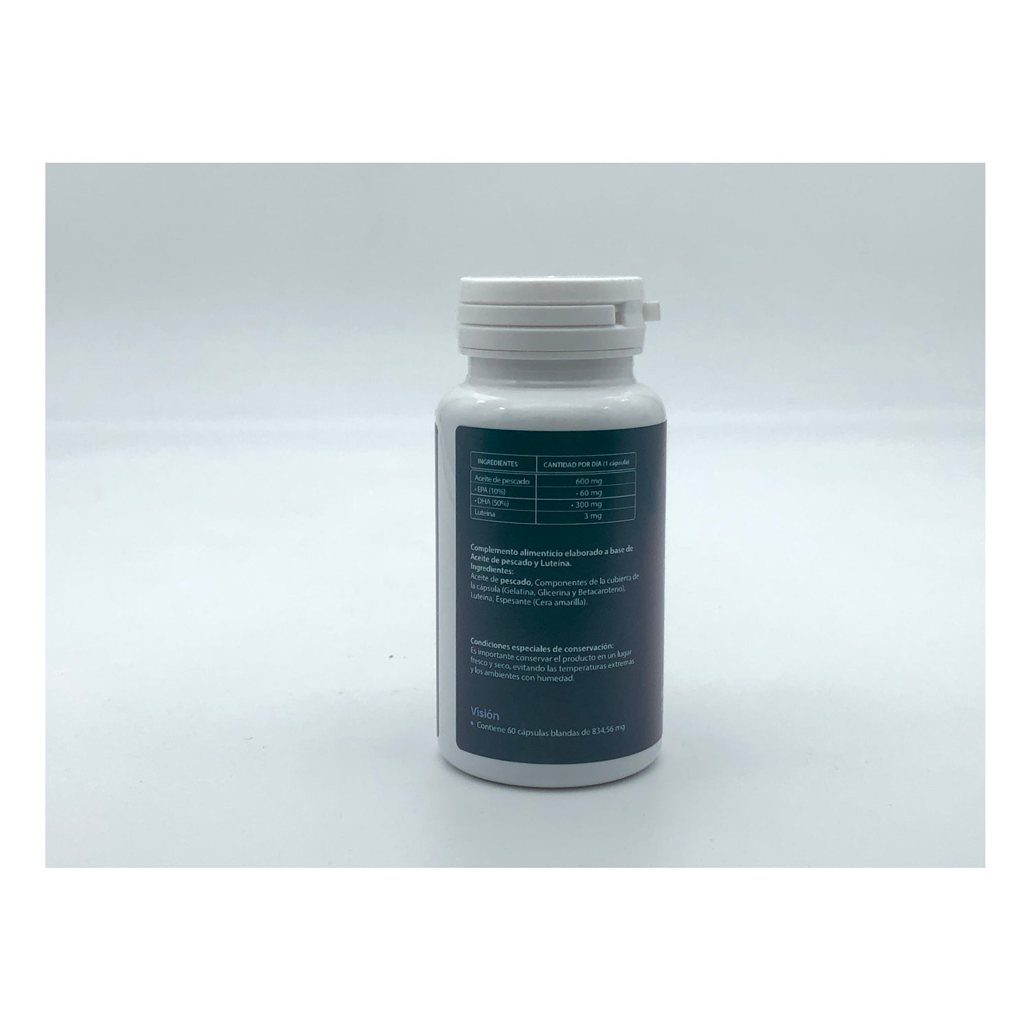 Ce complément alimentaire est élaboré à base d'huile de poisson, standardisée en acides gras oméga 3 (EPA et DHA) aux propriétés antioxydantes ; le DHA est présent dans la rétine et sa consommation (à partir de 250 mg par jour) contribue à maintenir une vision dans des conditions normales. D'autre part, il contient de la Lutéine, l'un des principaux caroténoïdes présents dans l'œil humain. Sa fonction est également antioxydante ; la lutéine est nécessaire pour protéger les tissus oculaires des dommages causés par la lumière solaire.