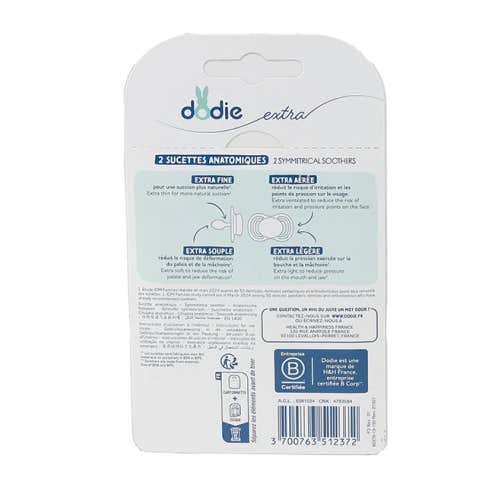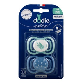 Dodie Extra Sucette Anatomique +6M F3 Fine Bleue se présente comme une option idéale pour les bébés à partir de six mois. Cette sucette est conçue avec un accent anatomique, ce qui permet de réduire la pression exercée sur la bouche et la mâchoire du bébé, favorisant ainsi son développement adéquat.