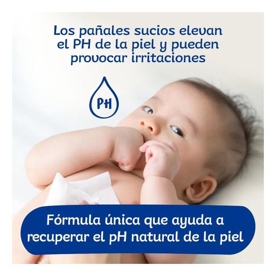 Lingettes humides conçues pour l'hygiène quotidienne et le soin de la peau pédiatrique, imprégnées d'une formule hypoallergénique. Avec un pH de 5,5 qui n'altère pas la peau des petits. Ils ont été fabriqués avec un tissu extra épais avec des gravures, qui aident à éliminer toutes les saletés de l'épiderme. Enrichi en glycérines végétales qui aident à soulager l'inconfort et l'irritation causés par l'utilisation des couches. Ils ne nécessitent pas de rinçage et ne contiennent pas d'alcool, de parabènes ou de colorants. Testé dermatologiquement. Convient aux bébés à partir de la naissance