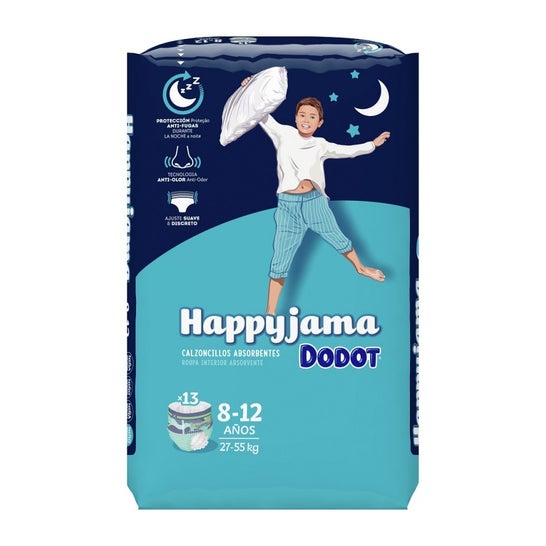 Dodot Happyjama Sous-vêtements Absorbants T8 27-55kg 13uds est la solution parfaite pour la protection nocturne des enfants de 8 à 12 ans qui peuvent mouiller le lit. Son design ultra discret et son ajustement 360º avec taille élastique garantissent sécurité et confort pendant la nuit, évitant les fuites et permettant un repos sec et tranquille.