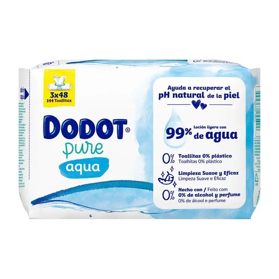 Dodot Total Care Aqua Wipes 3x48 pcs. sont des lingettes pour nourrissons à haute teneur en eau qui facilitent le nettoyage en douceur de la peau délicate de bébé. Leur composition en coton évite les irritations de la peau. Leur teneur élevée en eau contribue également à maintenir la peau hydratée plus longtemps. Contient 3 paquets de 48 pièces chacun.