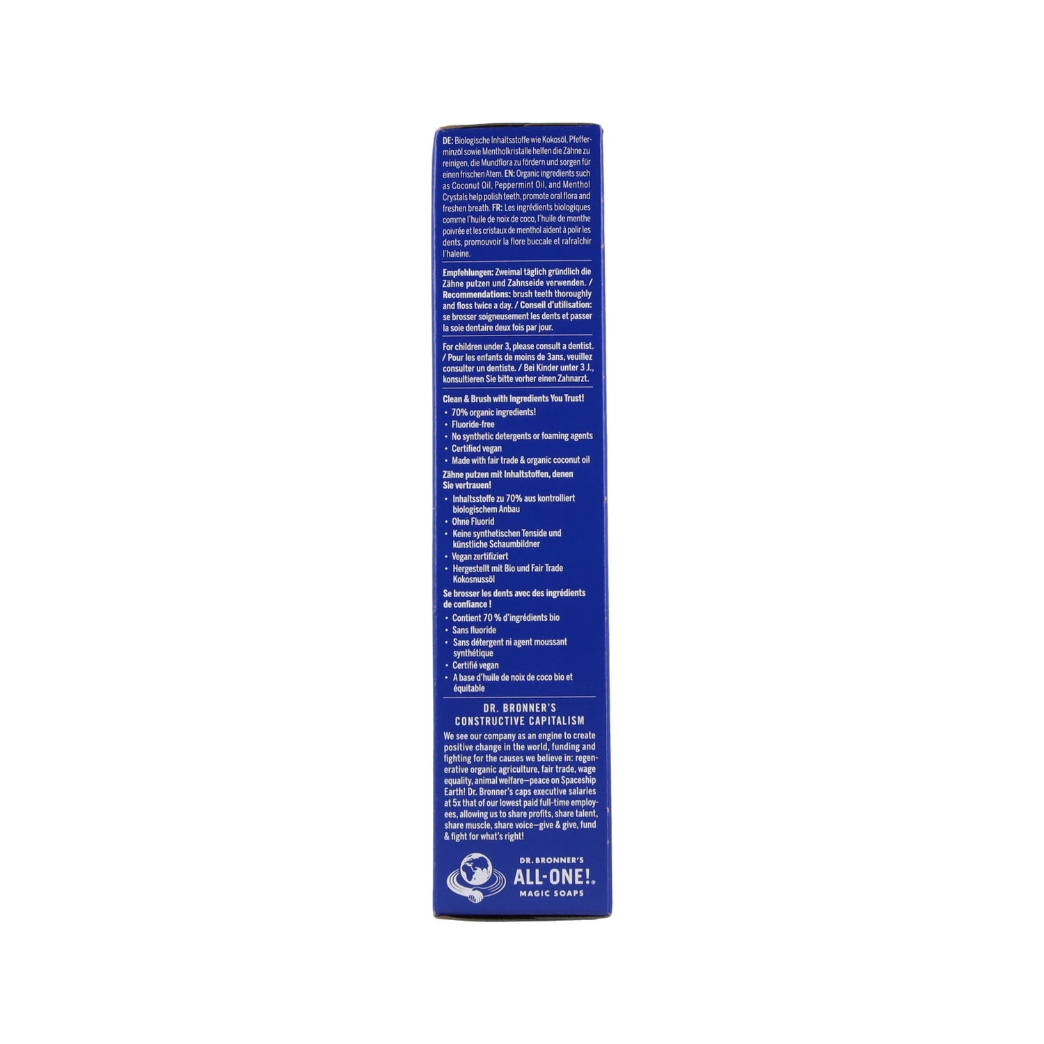 Dr. Bronners Dentifrice Tout-en-Un Menthe 140g offre une hygiène buccale naturelle et efficace, parfaite pour le soin intégral de la cavité buccale. Ce dentifrice combine un nettoyage en profondeur avec une sensation de fraîcheur durable.