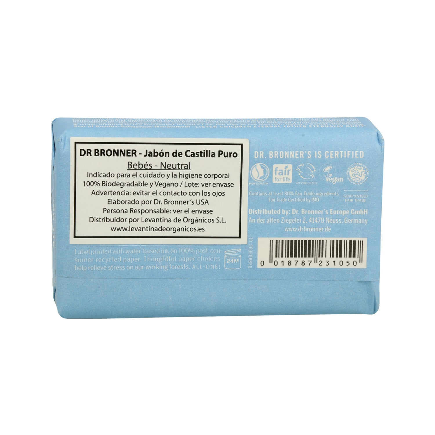 Dr. Bronner's Unscented 140g est un savon idéal pour le soin quotidien des peaux sensibles, y compris la peau des bébés. Sa formule douce et sans parfum, élaborée avec des huiles végétales biologiques et certifiées Fair Trade, offre un nettoyage efficace sans irriter ni assécher, respectant l'équilibre naturel de la peau.