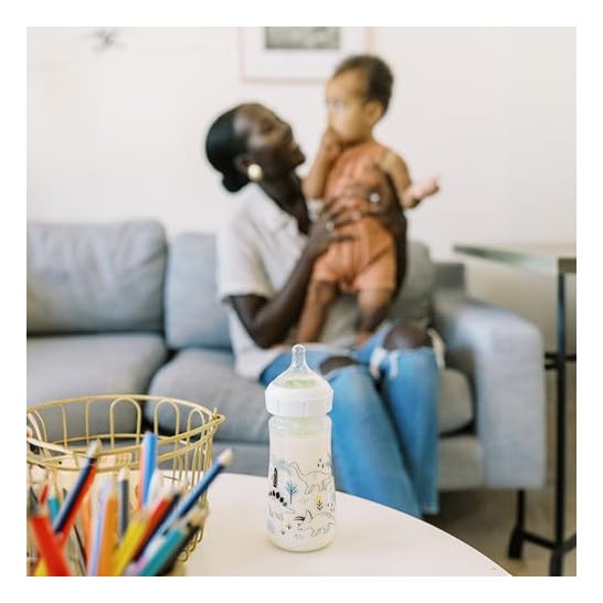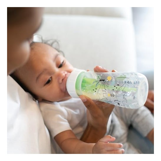 Avec un design charmant qui décore toute la bouteille, ce biberon allie qualité et style, offrant tranquillité lors de l'alimentation du bébé.