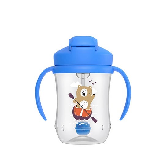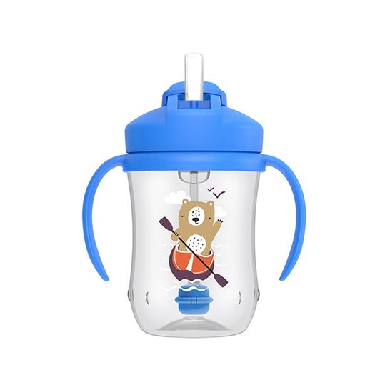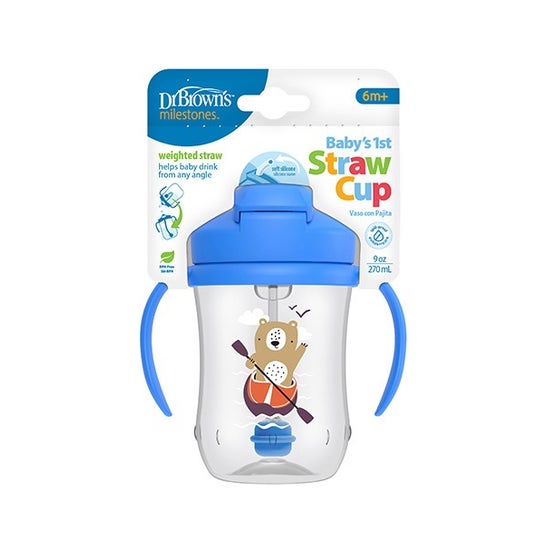 Dr Brown’s Mon Premier Gobelet avec Paille Ours Bleu +6 mois 270ml est idéal pour aider bébé à boire proprement, sans risque de se tacher.