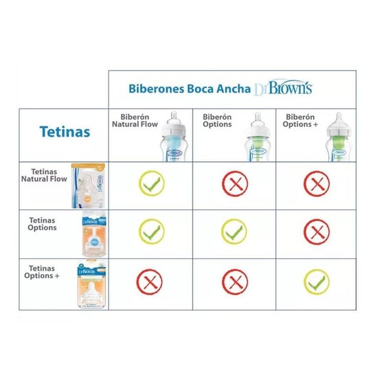 Plusieurs types de débit de tétine sont à distinguer : le débit lent indiqué pour les nouveau-nés; le débit moyen, à partir du troisième ou quatrième mois; le débit plus rapide, recommandé pour l'étape des purées et des céréales au lait. Le choix du débit de la tétine dépendra donc de la phase de croissance du bébé. Des options de débit variable qui peuvent être modulées selon l’orientation de la tétine sont également disponibles.