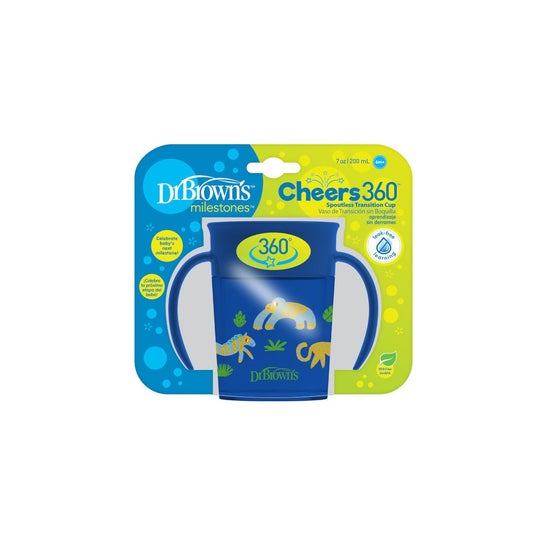 Tasse de transition conçue pour les bébés qui apprennent à manger. Avec un rebord souple à 360 degrés et une valve en silicone transparente, avec la technologie Sip and See, qui permet un système sûr sans déversements ni fuites. Aide les enfants à boire des liquides de manière autonome. Il existe en bleu, est facile à désinfecter et passe au lave-vaisselle. Sans BPA. Il a une capacité de 300ml. Convient aux bébés à partir de 9 mois.