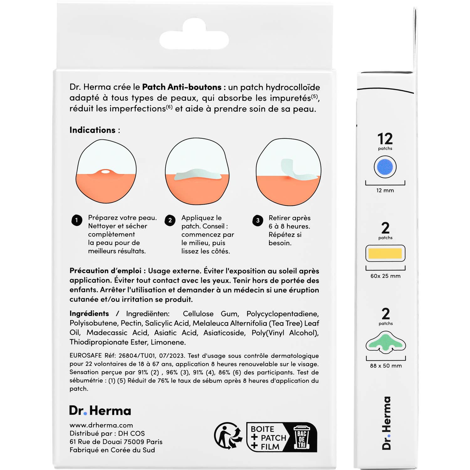 Dr. Herma Patch Anti-Grains Mix Petit Grand Nez 16uds est une solution complète pour le traitement des imperfections cutanées. Ce produit comprend trois types de patchs :