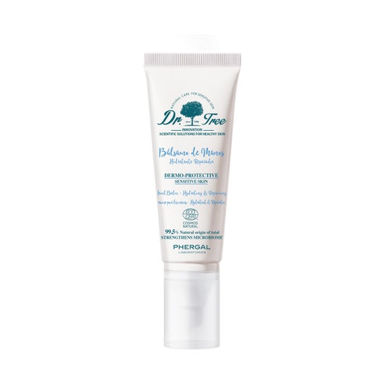 Dr Tree Baume Réparateur pour les Mains 50 ml pour les peaux sensibles apporte une hydratation intense et une réparation profonde. Il est indiqué pour les mains sèches, gercées ou irritées par des agressions externes.