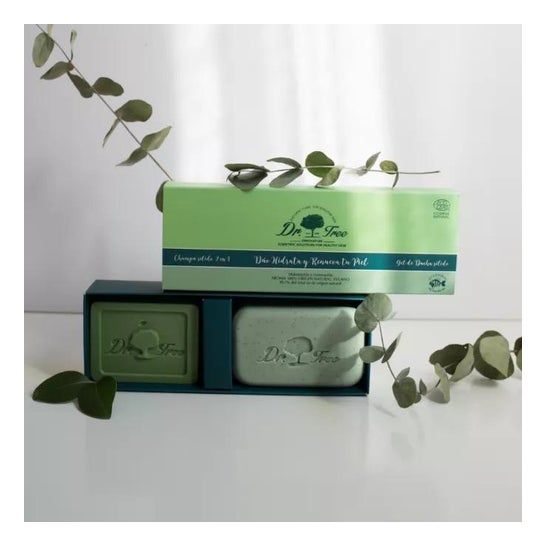 Kit de soins corporels comprenant un shampooing solide 2 en 1 et un gel douche solide. Aide à exfolier et à rafraîchir la peau et les cheveux tout en aidant à éliminer les cellules mortes et les toxines de la surface de la peau. Ses ingrédients ont des propriétés régénérantes et hydratantes. Convient à tous les types de peau.