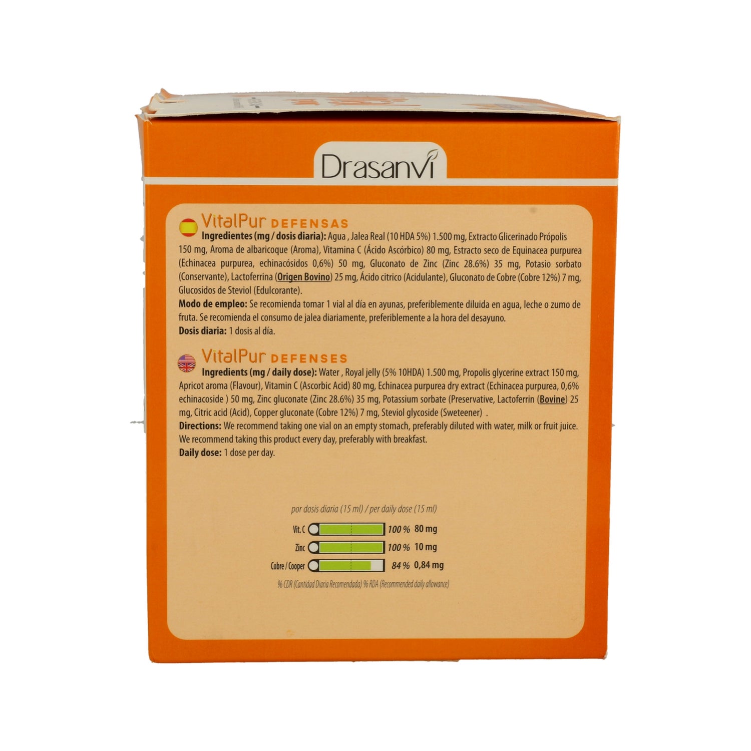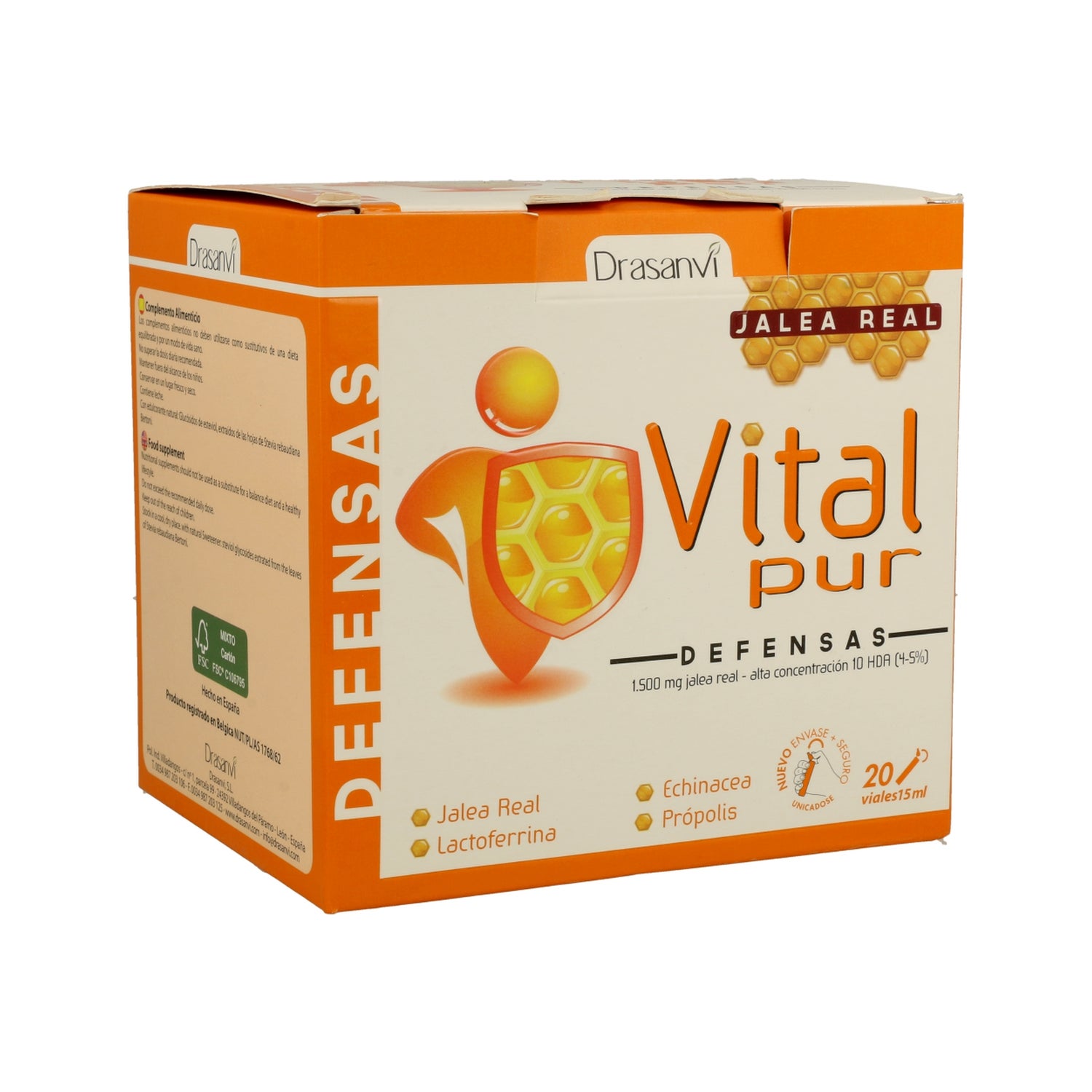 Vitalpur Royal Jelly Defenses of Drasanvi est un complément alimentaire qui aide à augmenter les défenses et renforce le système immunitaire. Recommandé pour les personnes qui présentent des symptômes constants de fatigue ou qui ont besoin d'un renforcement pour augmenter leurs défenses.