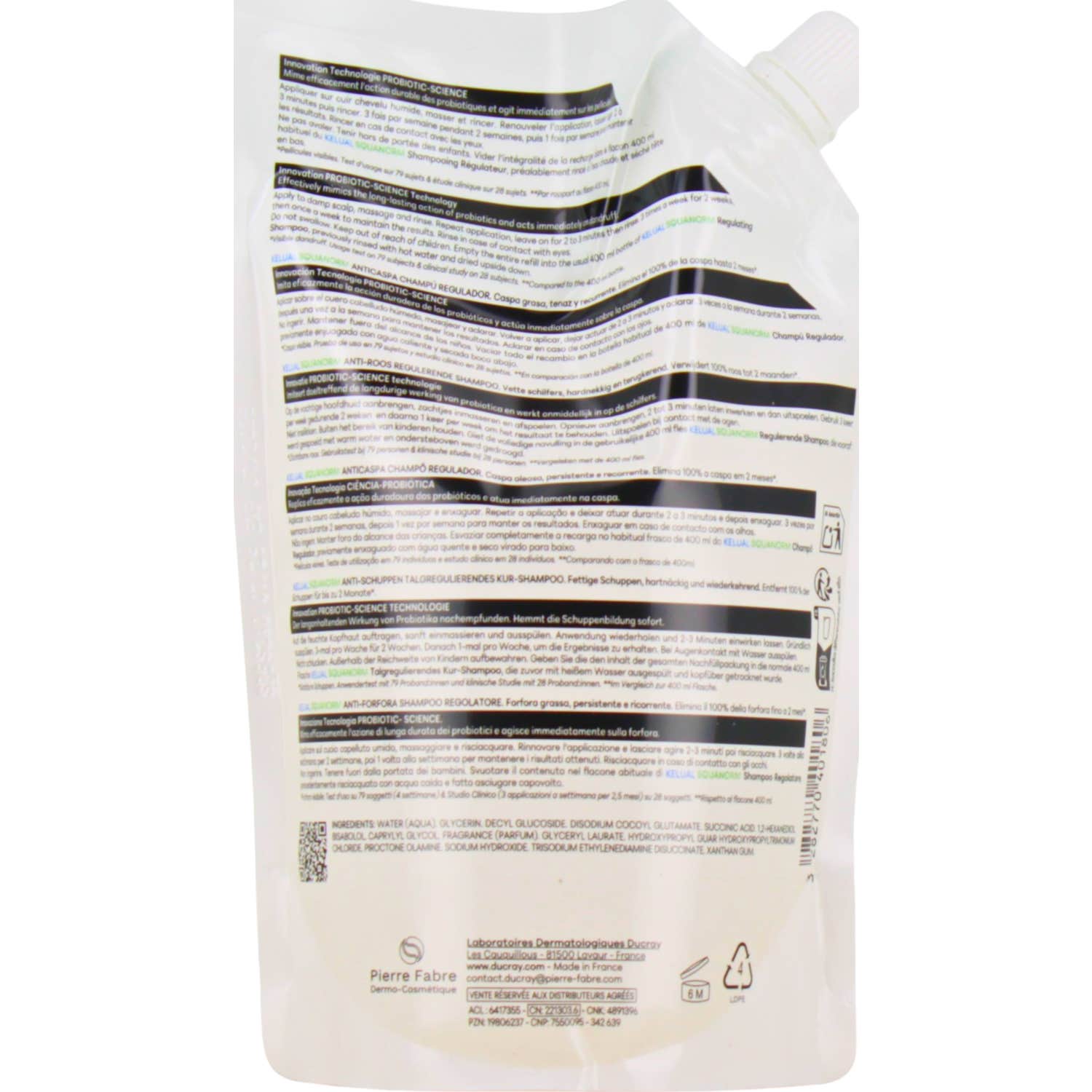 Ducray Kelual Squanorm Anti Pelliculaire Shampooing Régulateur Recharge 400 ml est conçu spécifiquement pour lutter contre les pellicules grasses sur le cuir chevelu. Ce shampooing, pionnier dans sa catégorie grâce à sa technologie PROBIOTIC-SCIENCE, élimine efficacement 100 % des pellicules visibles dès la première application. De plus, son action anti-récidive s'étend jusqu'à deux mois, garantissant une efficacité prolongée.