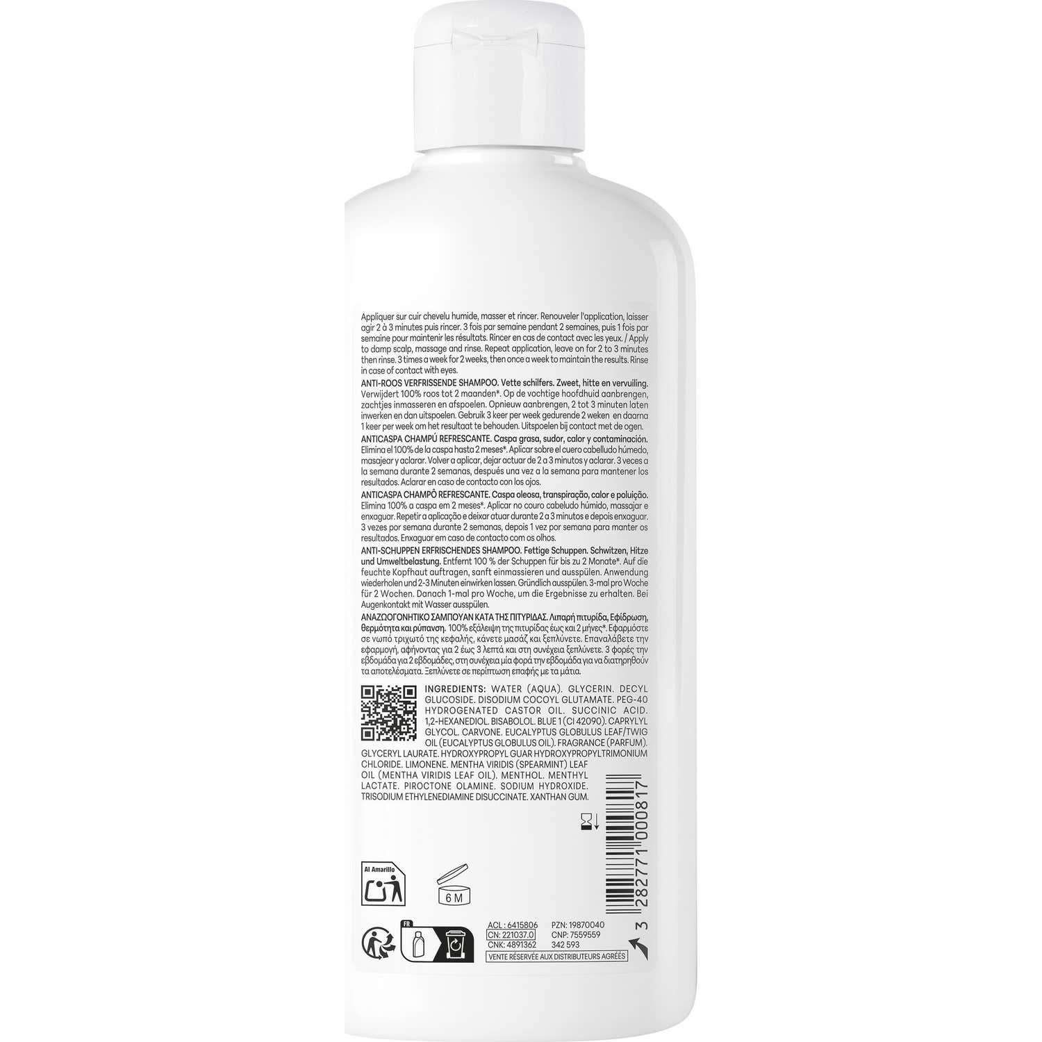 Ce produit se positionne comme le premier shampooing antipelliculaire avec un pouvoir rafraîchissant, garantissant l'élimination de 100% des squames visibles et des impuretés dès la première application.
